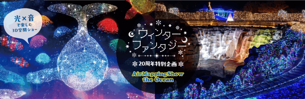 ウィンターファンタジーにてAirMappingShow the Oceanの公開が決定!イルミネーションと融合した光り輝く海の生き物たちのコラボレーションをお楽しみください。