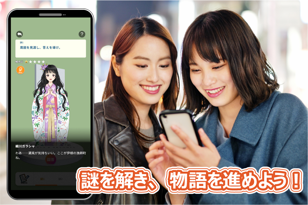 丹後の国について知るために物語が記されたとされている6つの巻物を探そうとしたところ、タイムスリップしたあなたと遭遇。あなたはガラシャと共に謎を解き明かし、6つの巻物を探すことを決心!