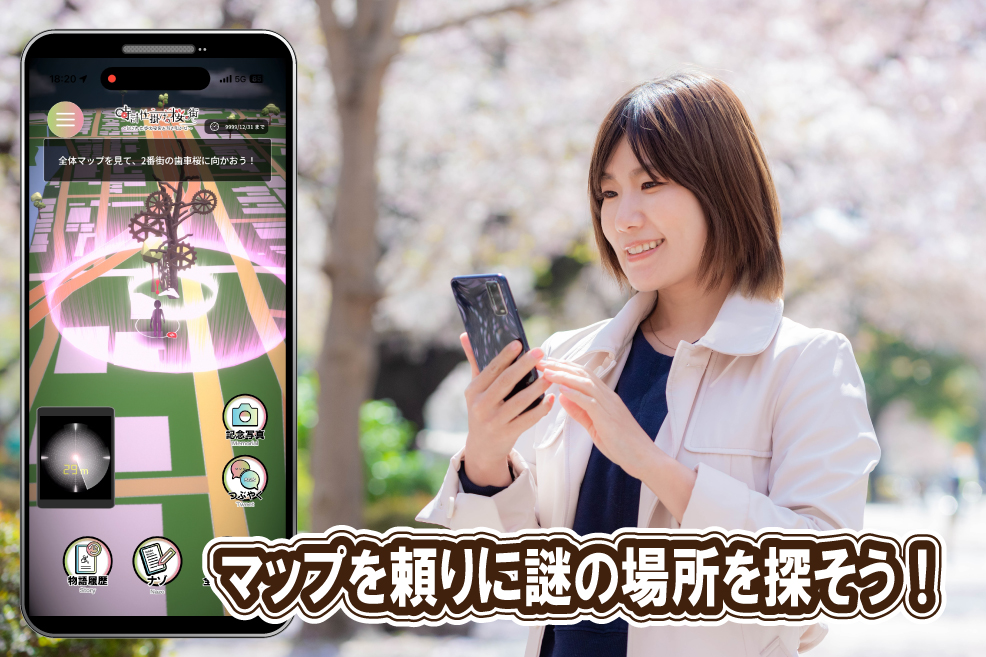 本作品は、本作品は、現実世界と並行したもう1つの世界、桜咲町(おうさきちょう)があるといわれている下記桜スポットでお楽しみ頂けます。