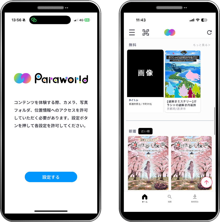 ログイン後画面に沿って初期設定をします。体験時に必要なため全て許可してください。全て許可すると右側のアプリTOP ページ(ホーム)に移動します。